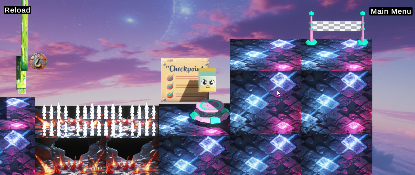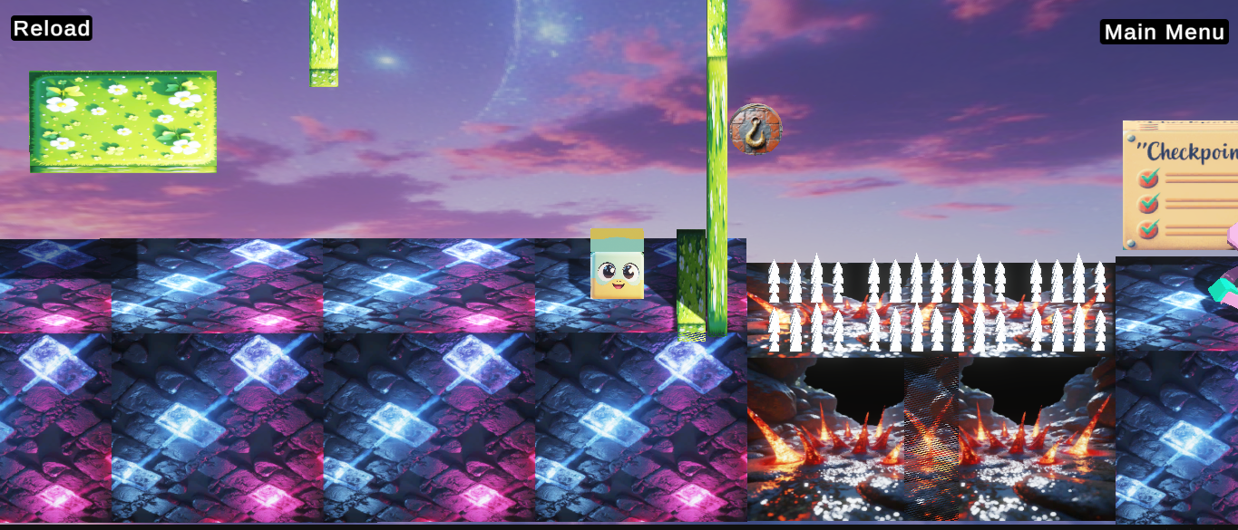 ⚙️ Dynamic traps and mechanics — spikes, crushers, flames, shifting floors, and more.